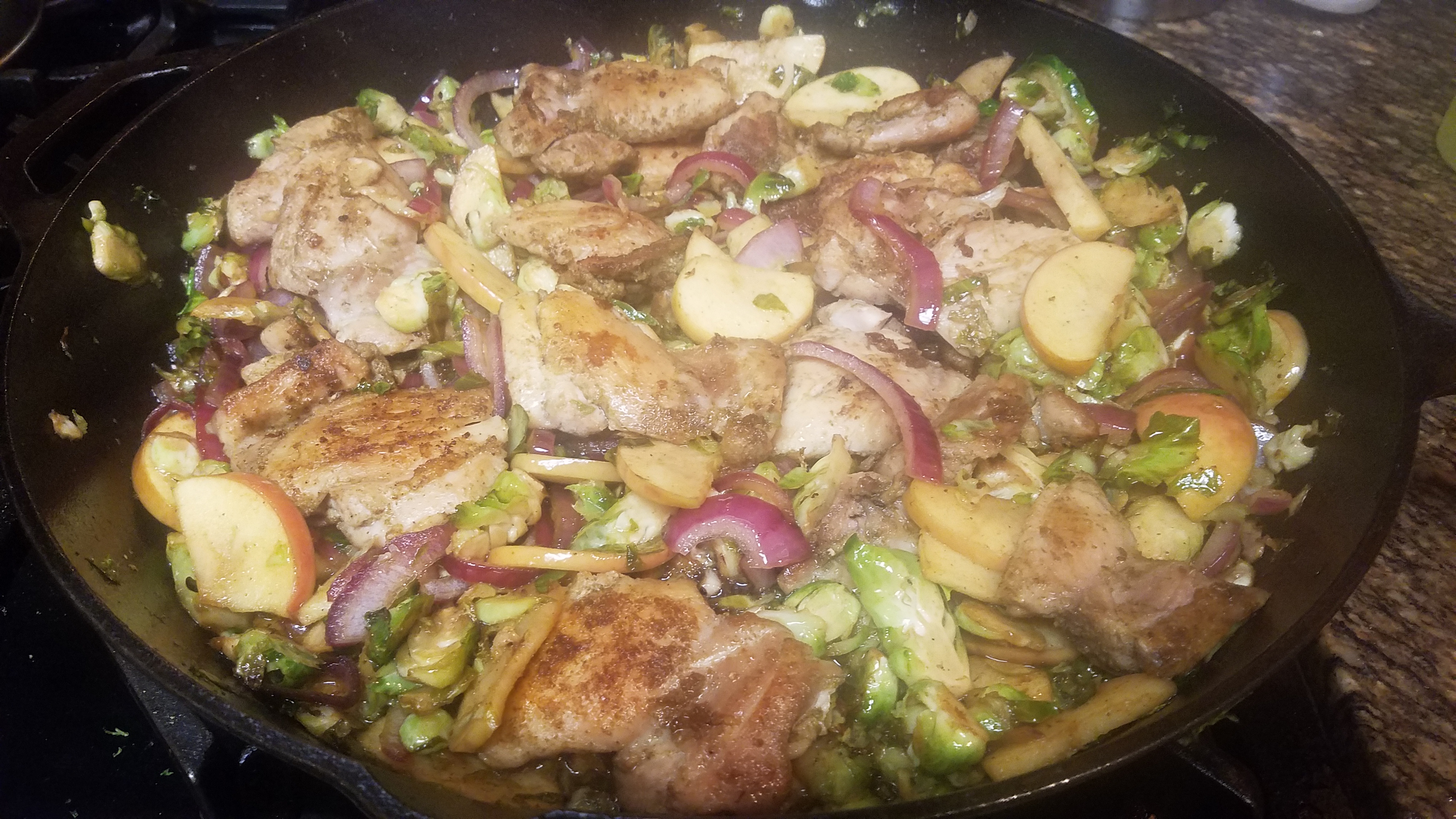 When I think of cast Iron skillet dinners you can go so many ways but most importantly they are fun to make. Brussel Sprouts are one of my favorite vegetables and with chicken and apples they are a perfect combination.